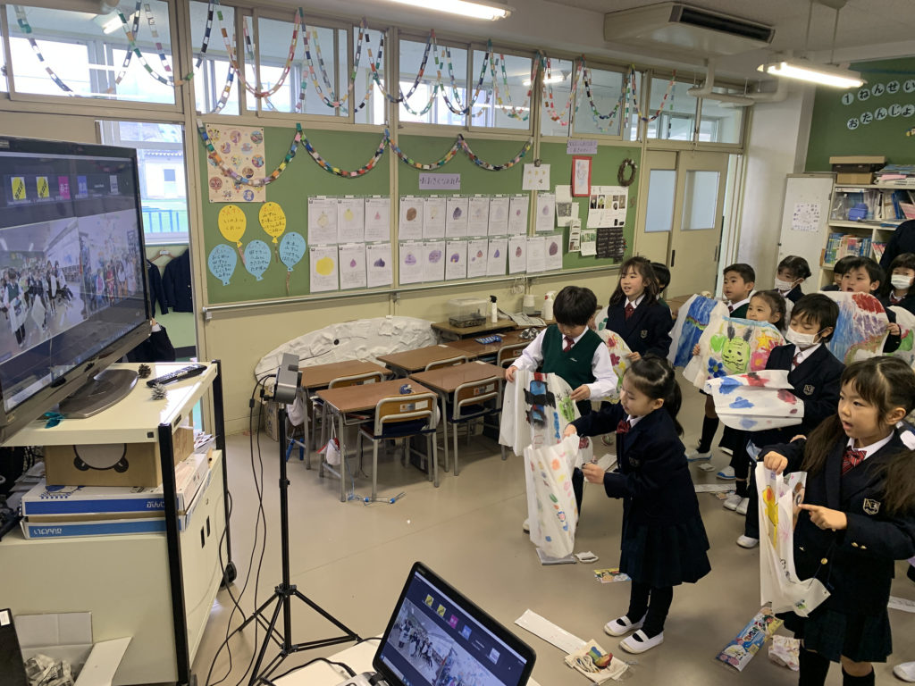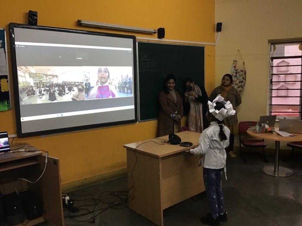 Later students from Japan side showed a few videos related to their sports like how kite flying is done and they showed live spinning of the Japanese top. Then with an interesting question answer round like favourite community helper, what they call a firetruck in Japan, national fruit, famous food and so on the session came to an end