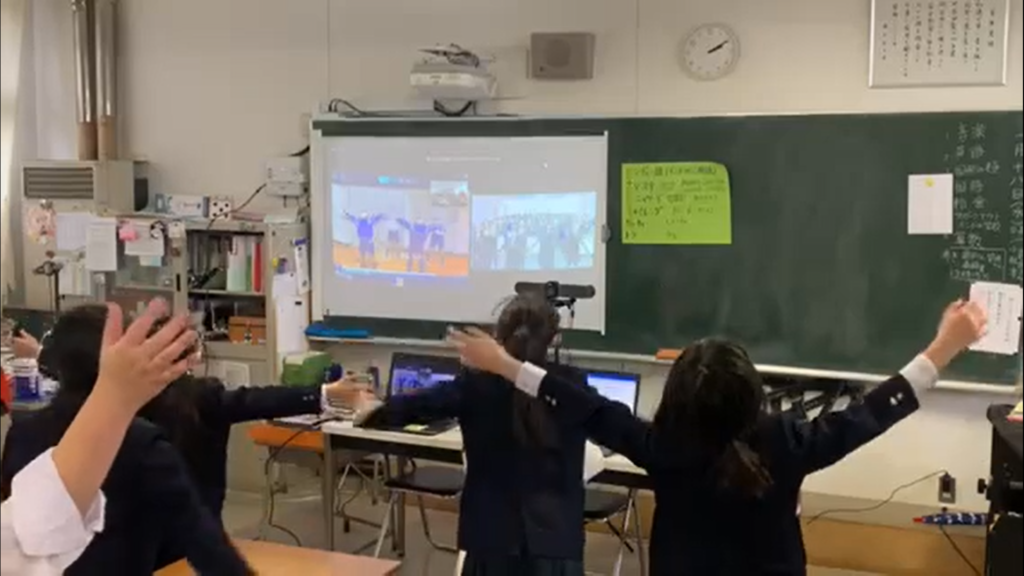 Students of Nara school had organized a radio exercise where both schools students performed together and they enjoyed it a lot.