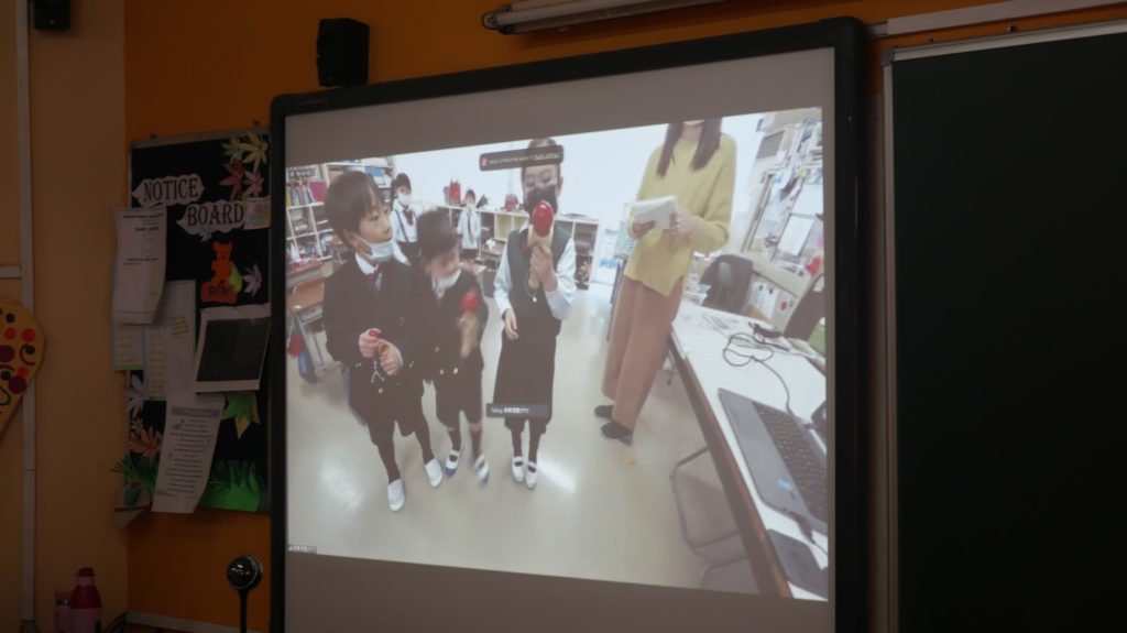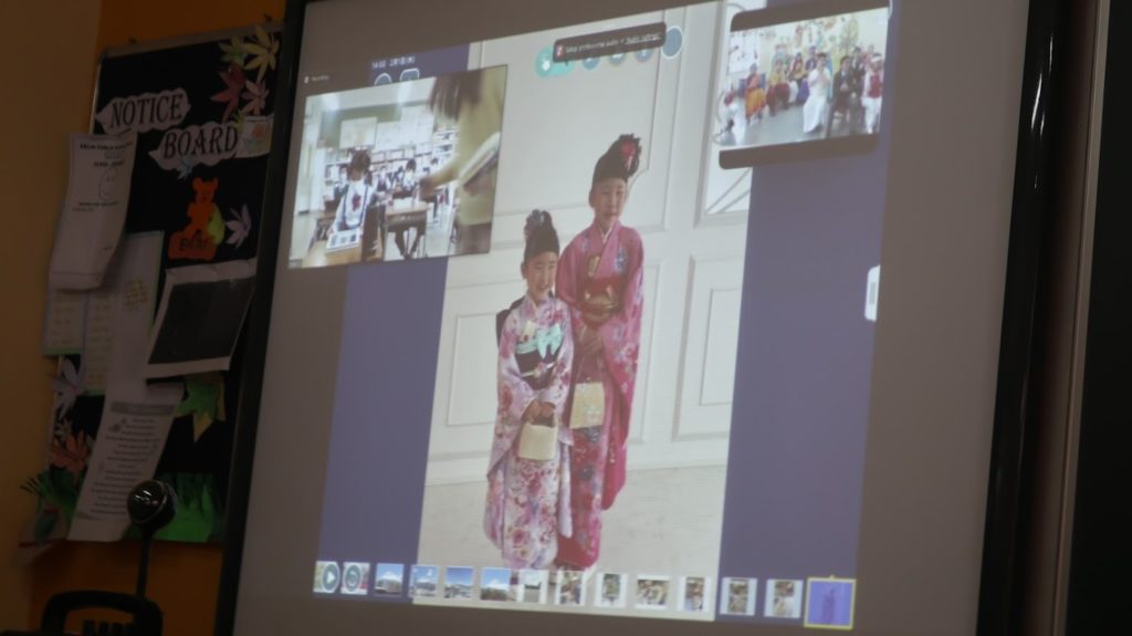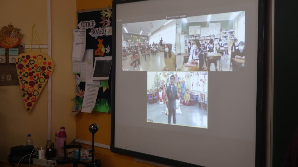 Delhi Public School, Ranchi, India, and Nara Ikuei Global Elementary School, Japan, took part in a discussion with classmates in classes 1 and 2 about how Japanese people celebrate the new year and Indian traditional clothing.